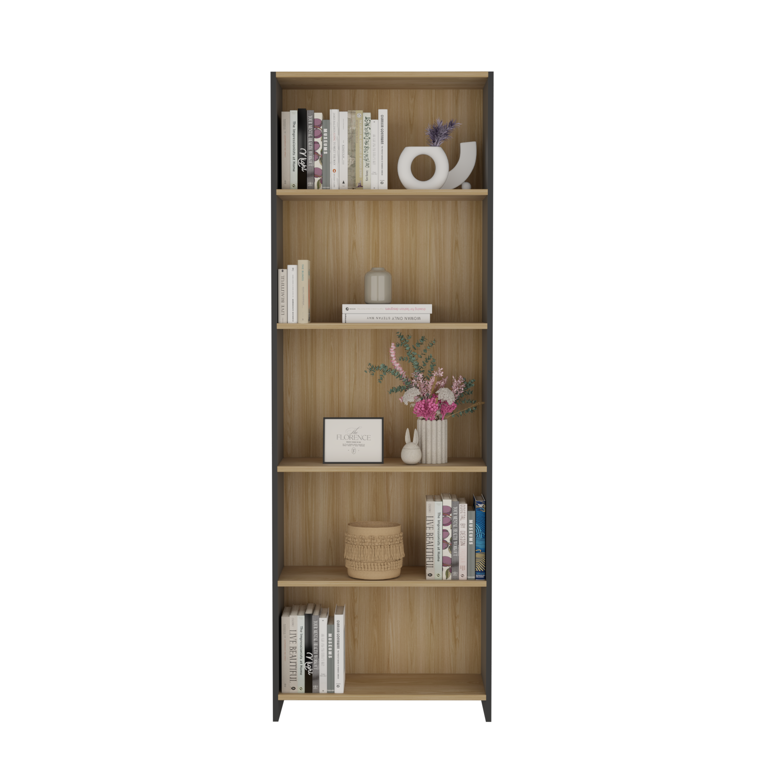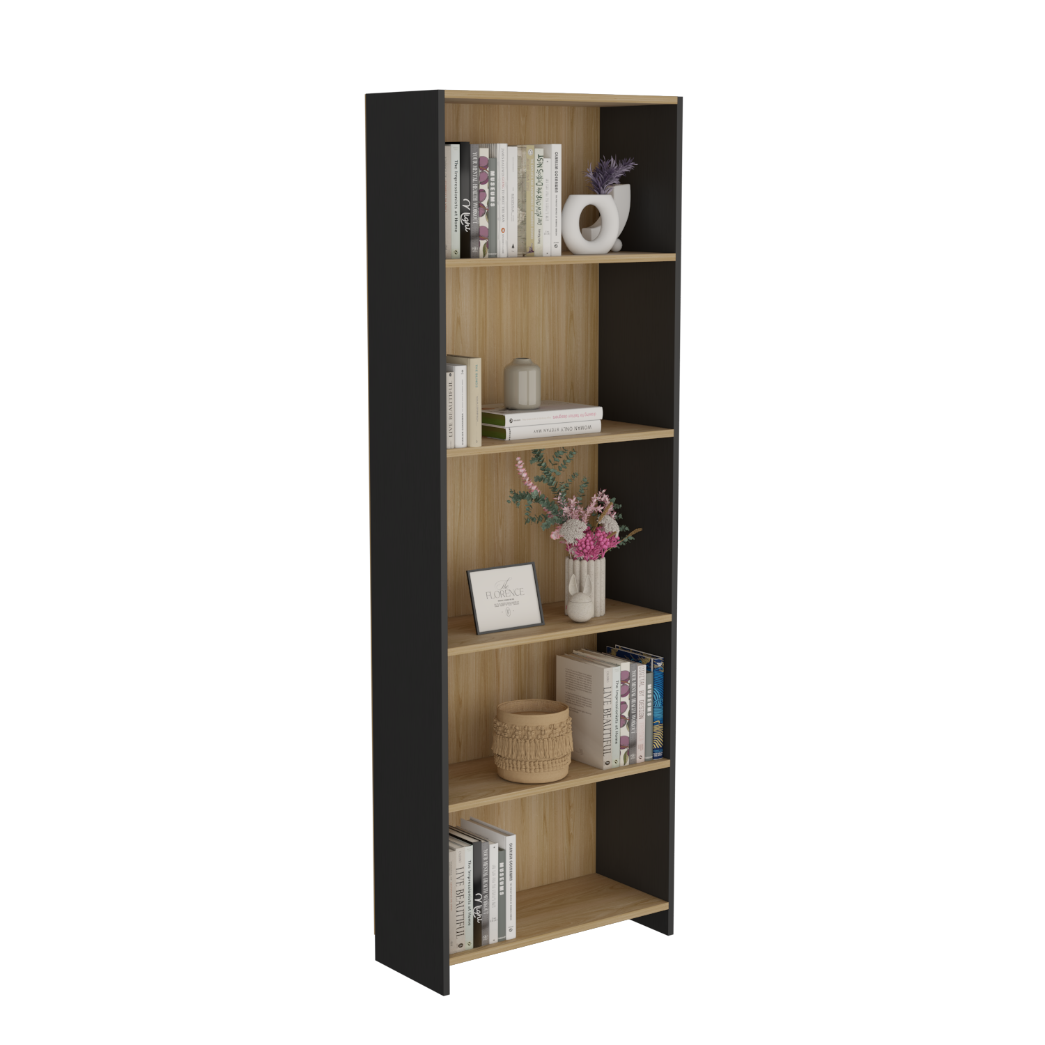 Biblioteca con un diseño moderno espacios para libros y objetos decorativos, 4 entrepaños moviles y manijas metalicas