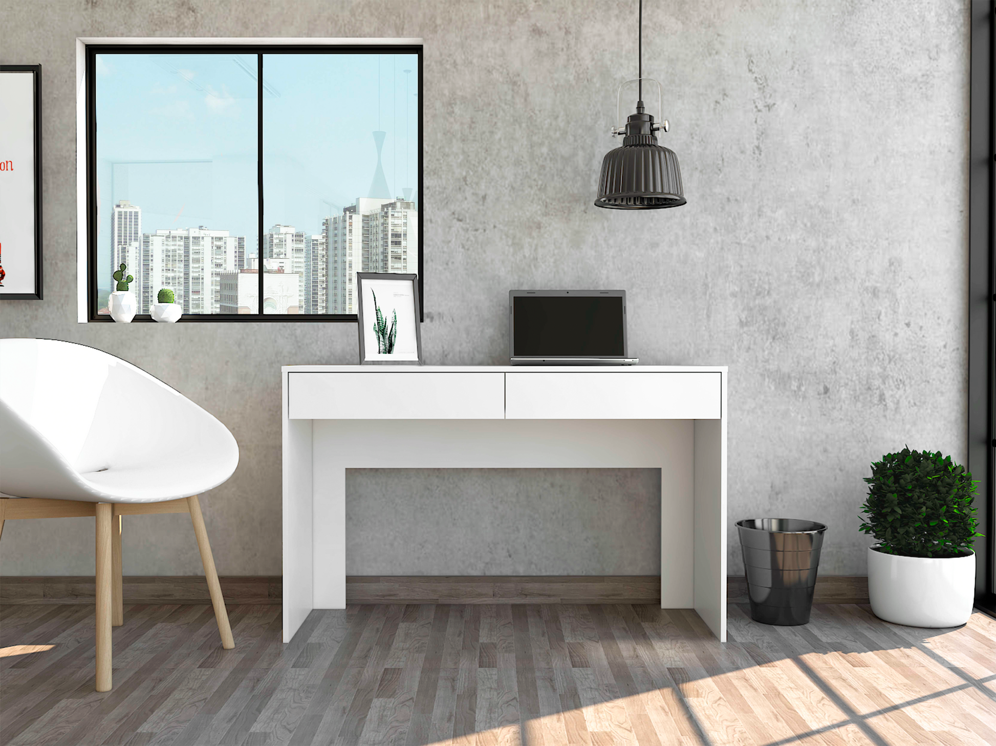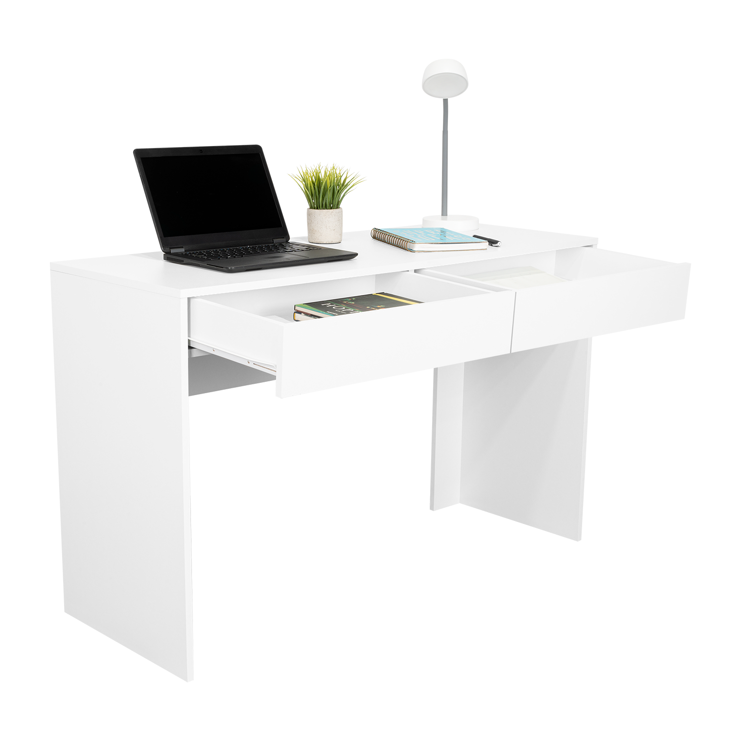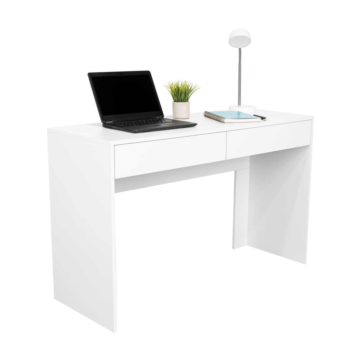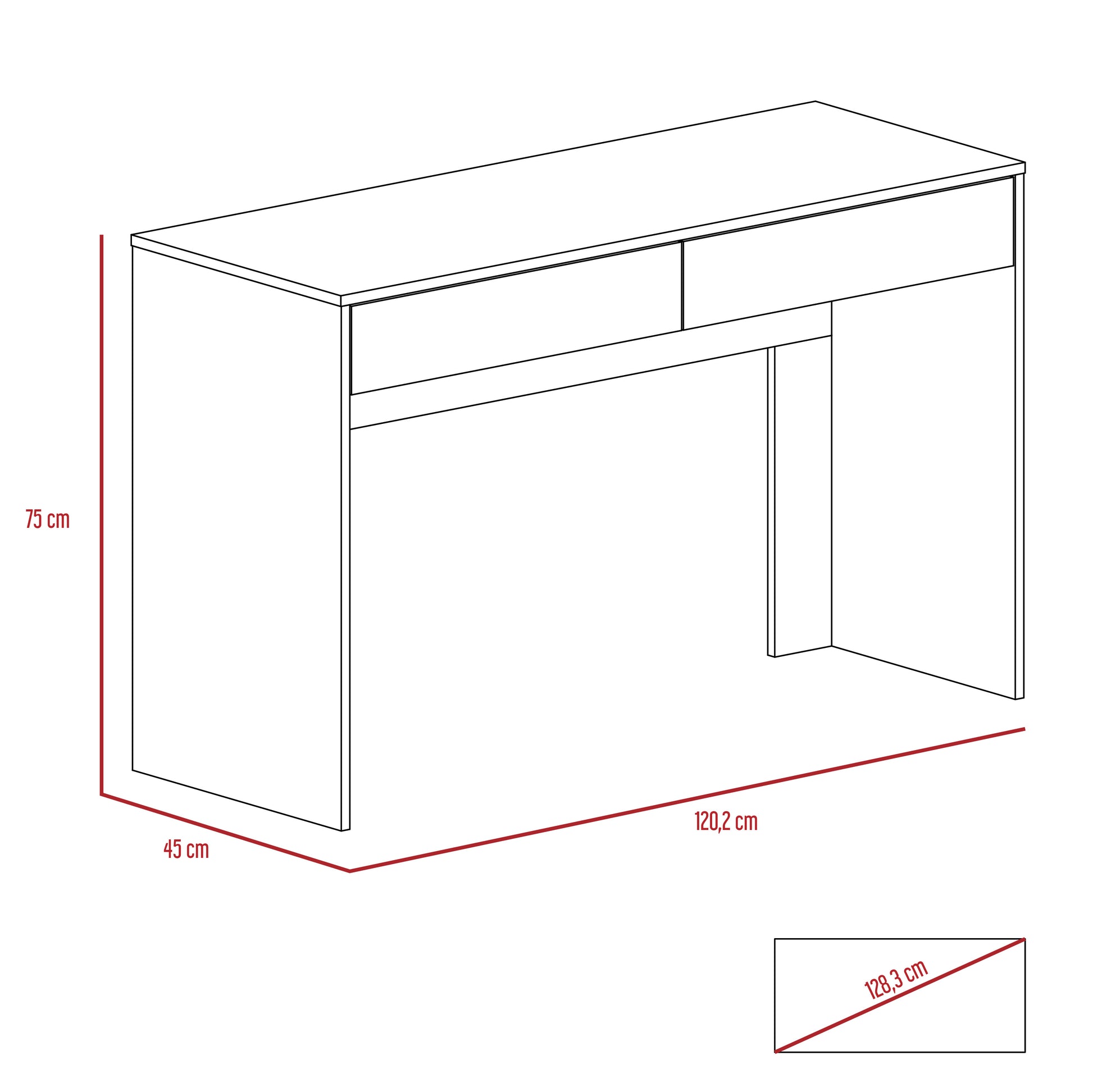 Escritorio con amplia superficie de trabajo, con dos cajones
