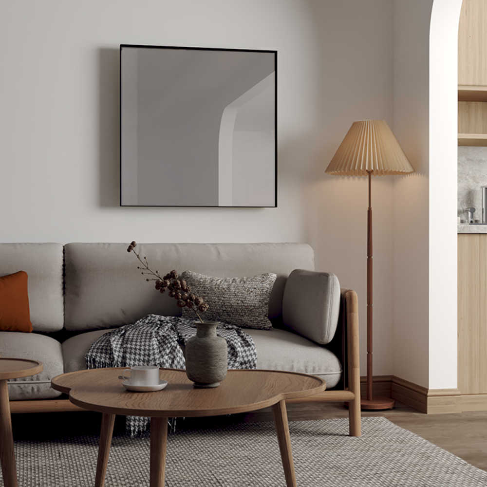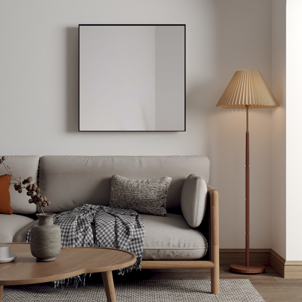Espejo con estructura en aluminio negro, emsamble a ala pared con chaflan.