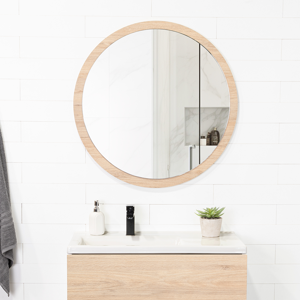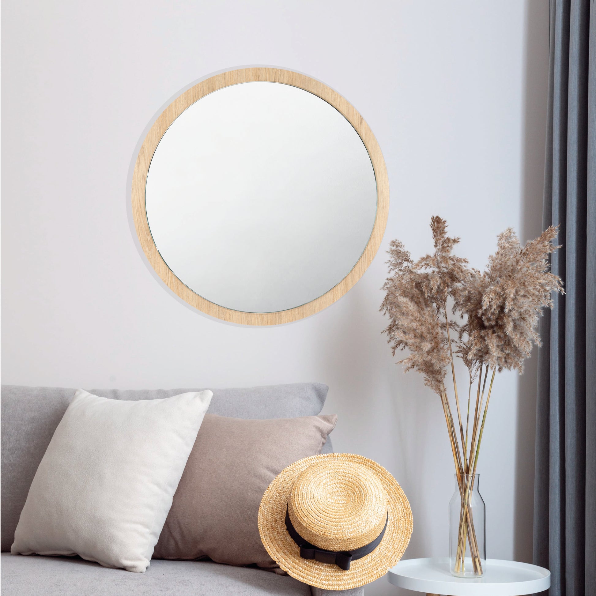 Espejo circular con marco en madera MDP clara Calibre 15mm y espejo Cal 4mm, con chaflán para facilitar su instalación