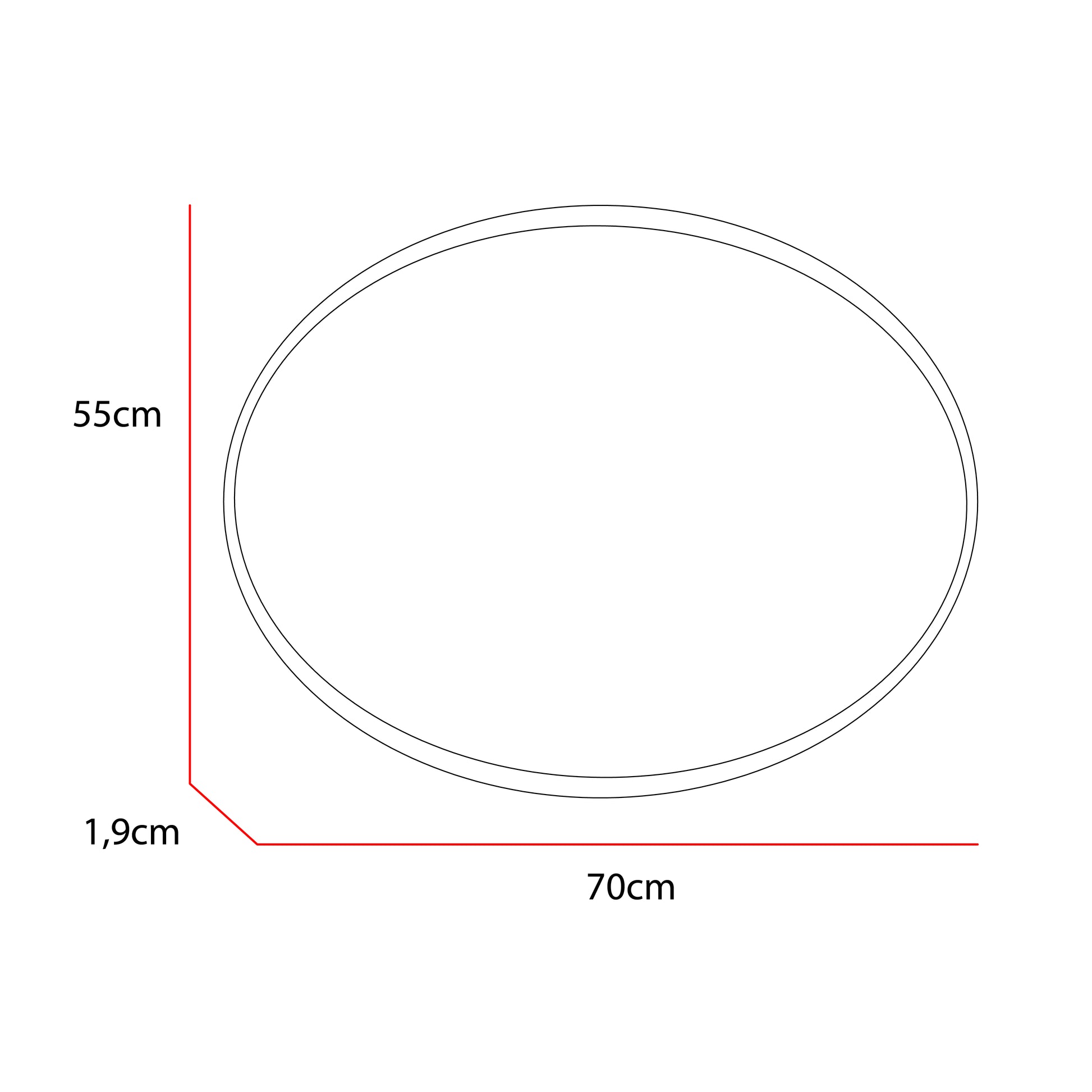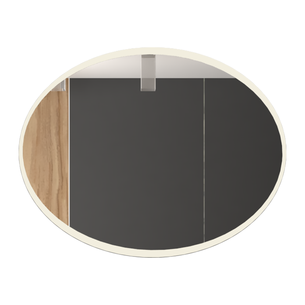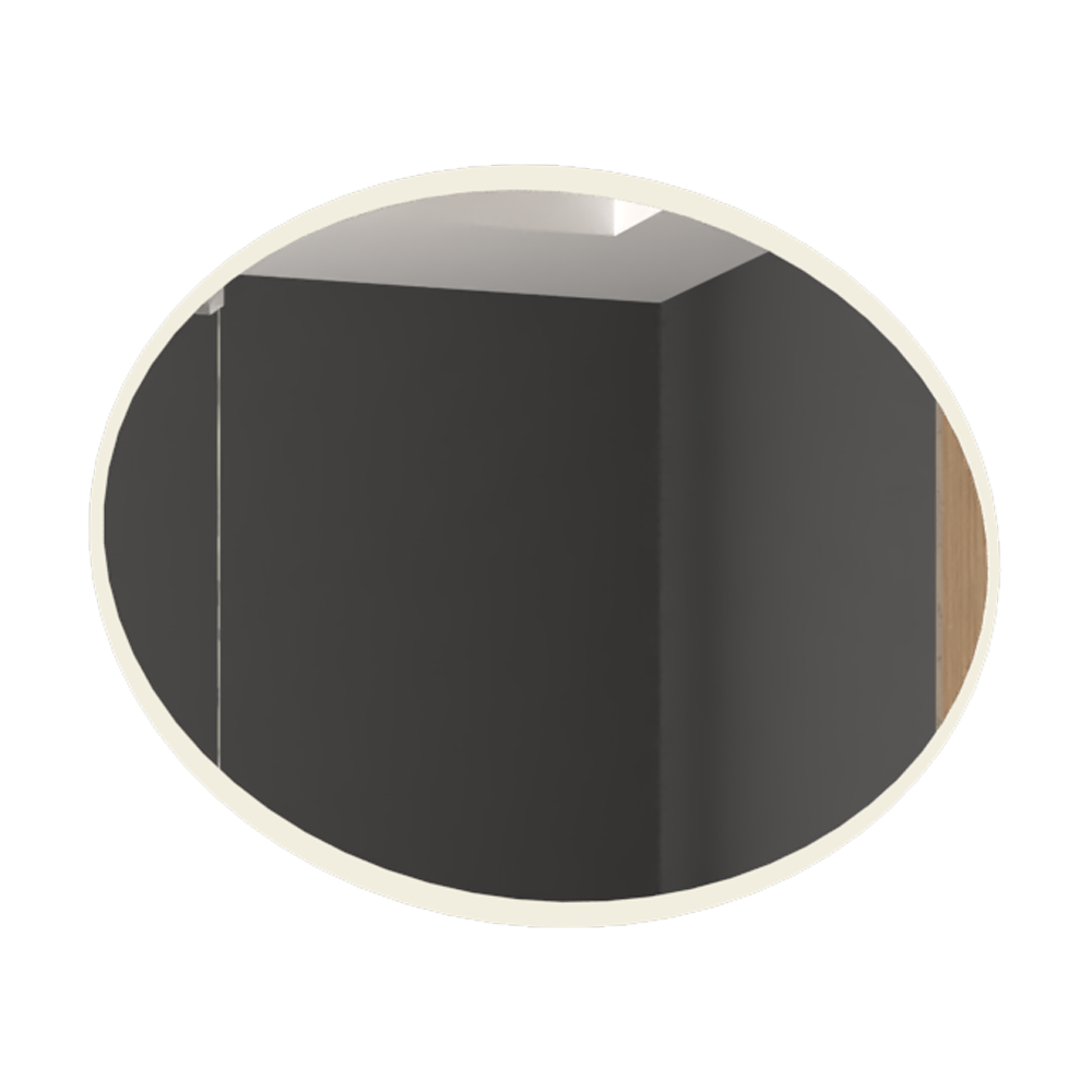 Espejo ovalado con bordes en sandblasting, ensamble a pared con chaflan.