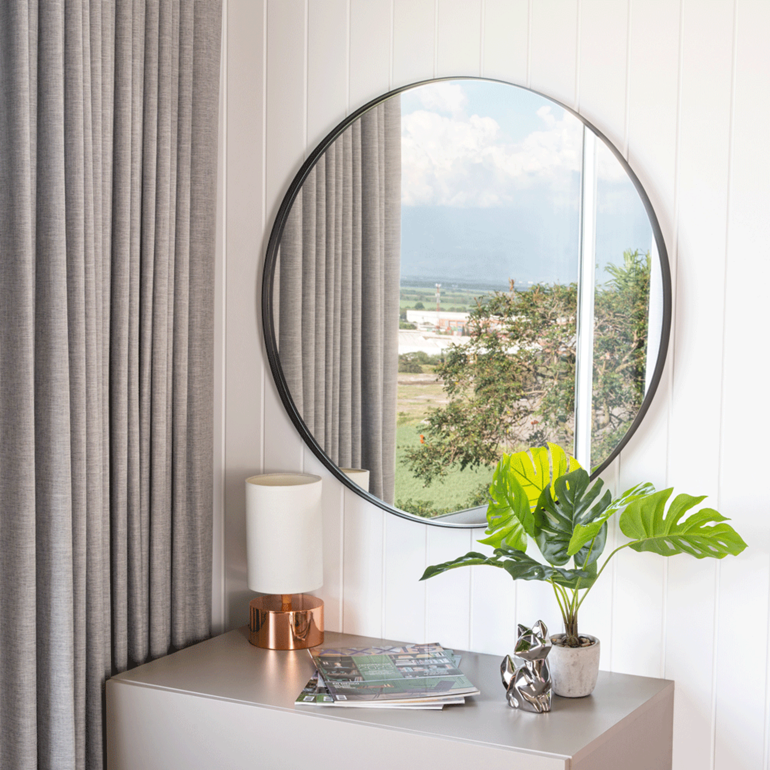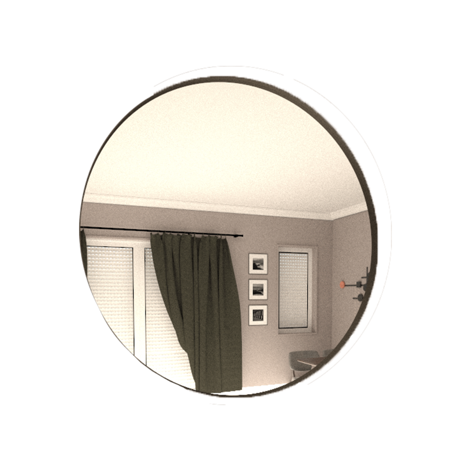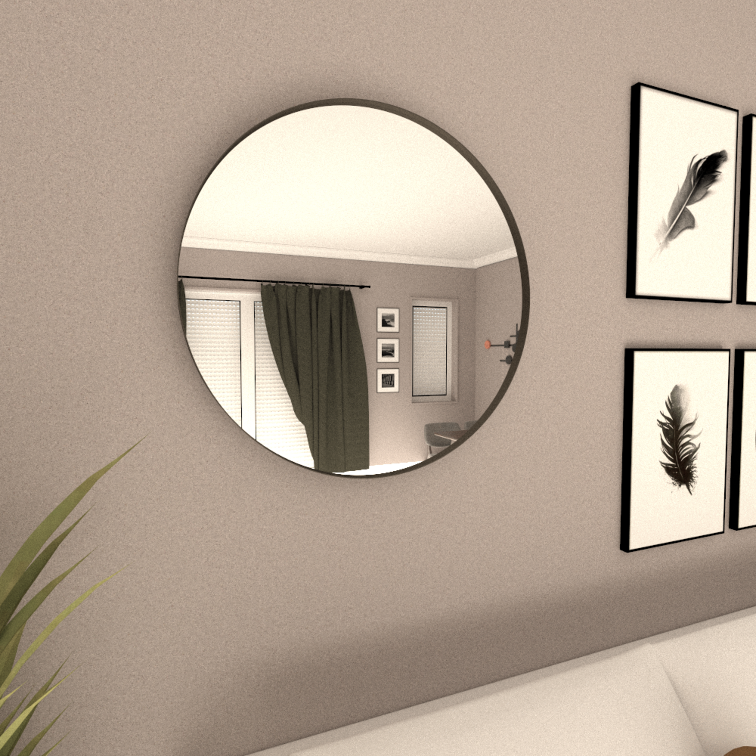 Espejo circular con estructura metalica, ensamble a pared con chaflan.