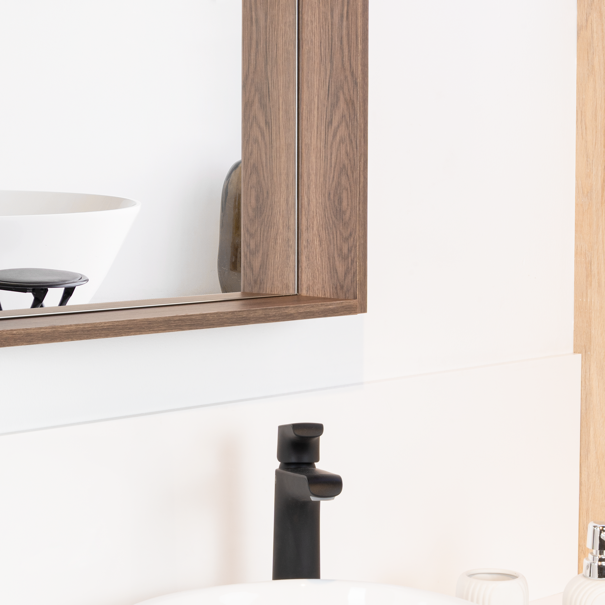 Espejo rectangular con marco en madera mdp, ensamble a la pared con chaflan