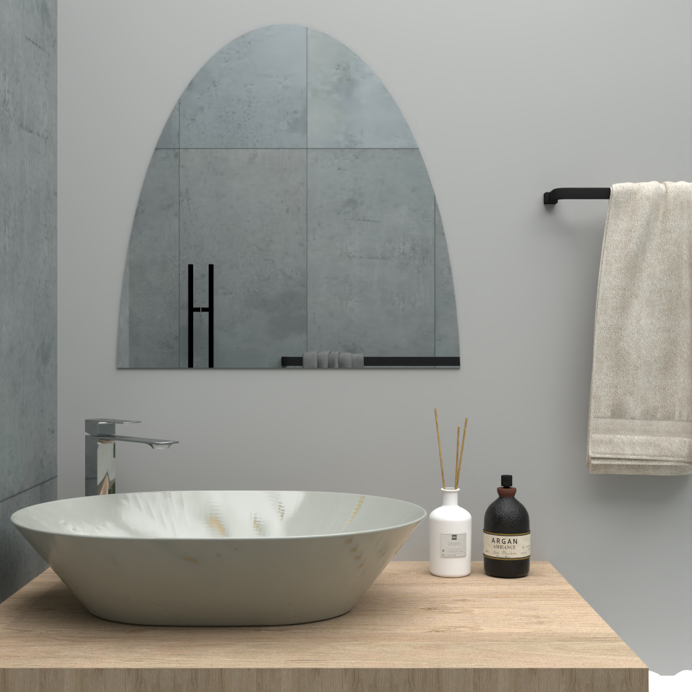 Espejo semicirculo sencillo, ensamble a la pared con chaflan.