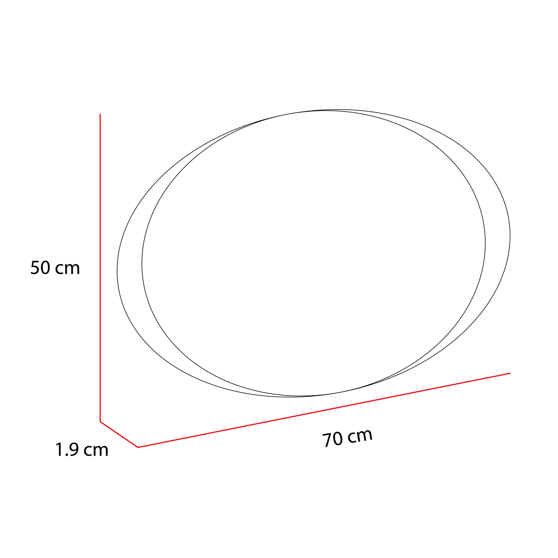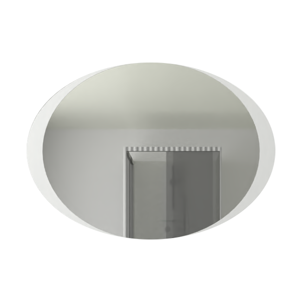Espejo ovalado con diseño sandblasting, ensamblado a la pared con chaflan.