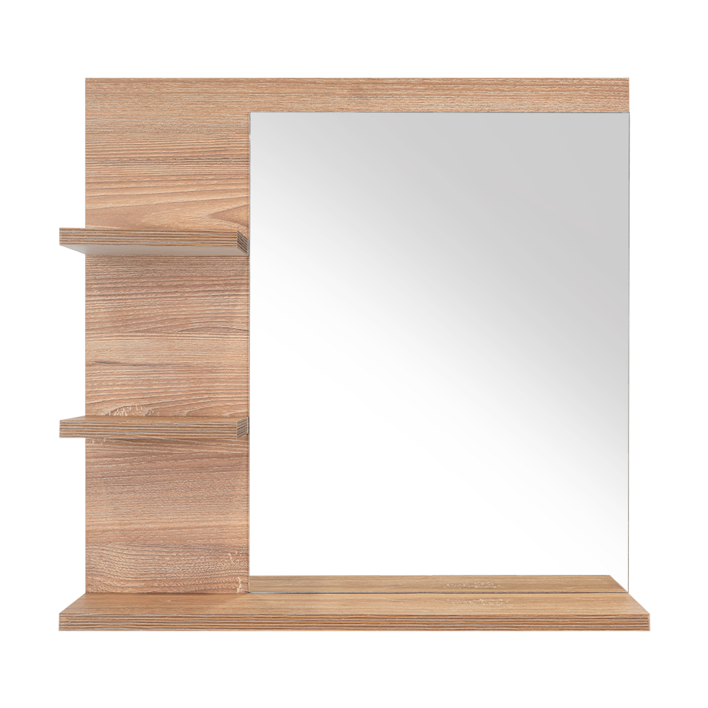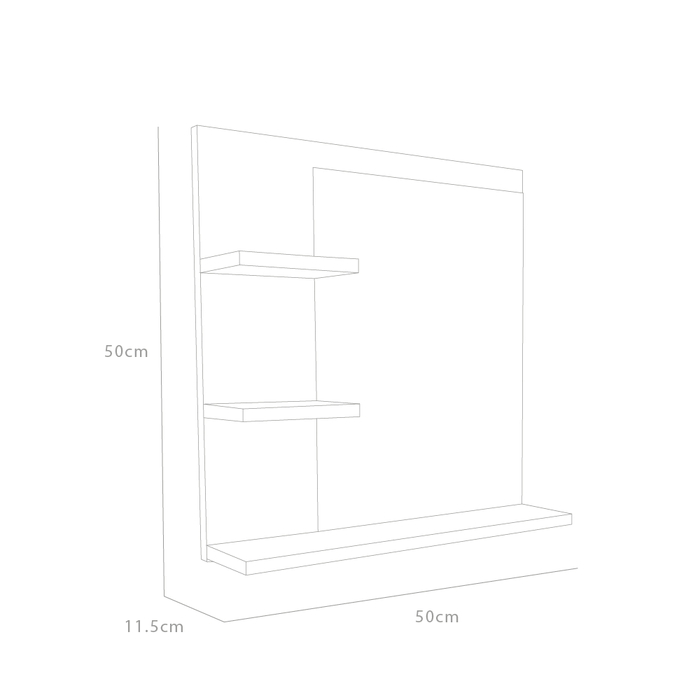 Gabinete ideal para el baño, tipo repisa en madera MDP color claro cal 15 mm con 2 bases pequeñas y 1 grande y espejo rectangular en Cal 2mm, cuenta con 3 tornillos y chazos para facilitar su instalación.