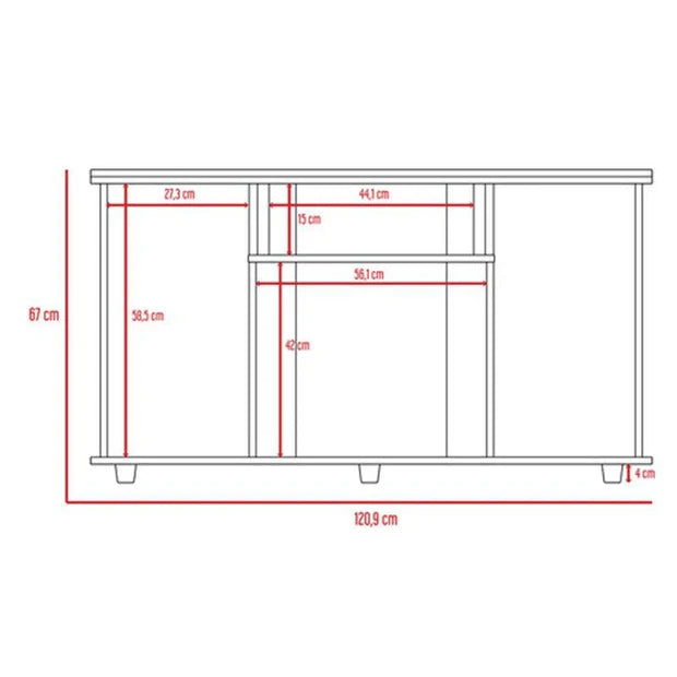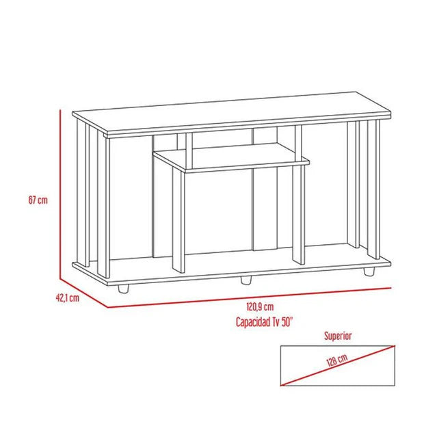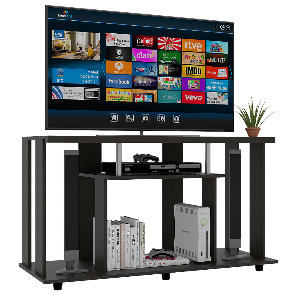 Mesa con diseño moderno, espacio superior para TV de hasta 50'', espacio para equipo de audio y video, patas plásticas para facil desplazamiento, facil instalacion