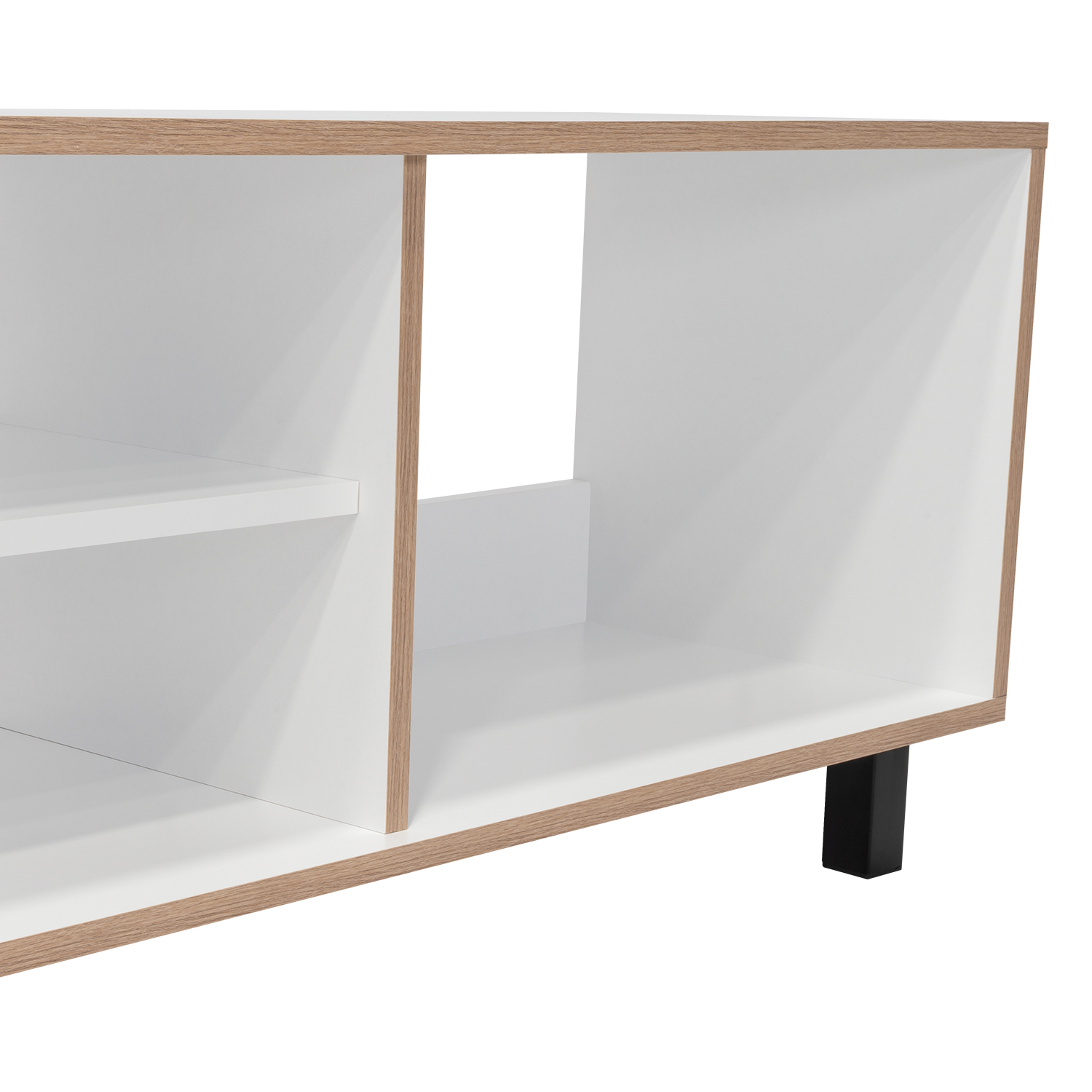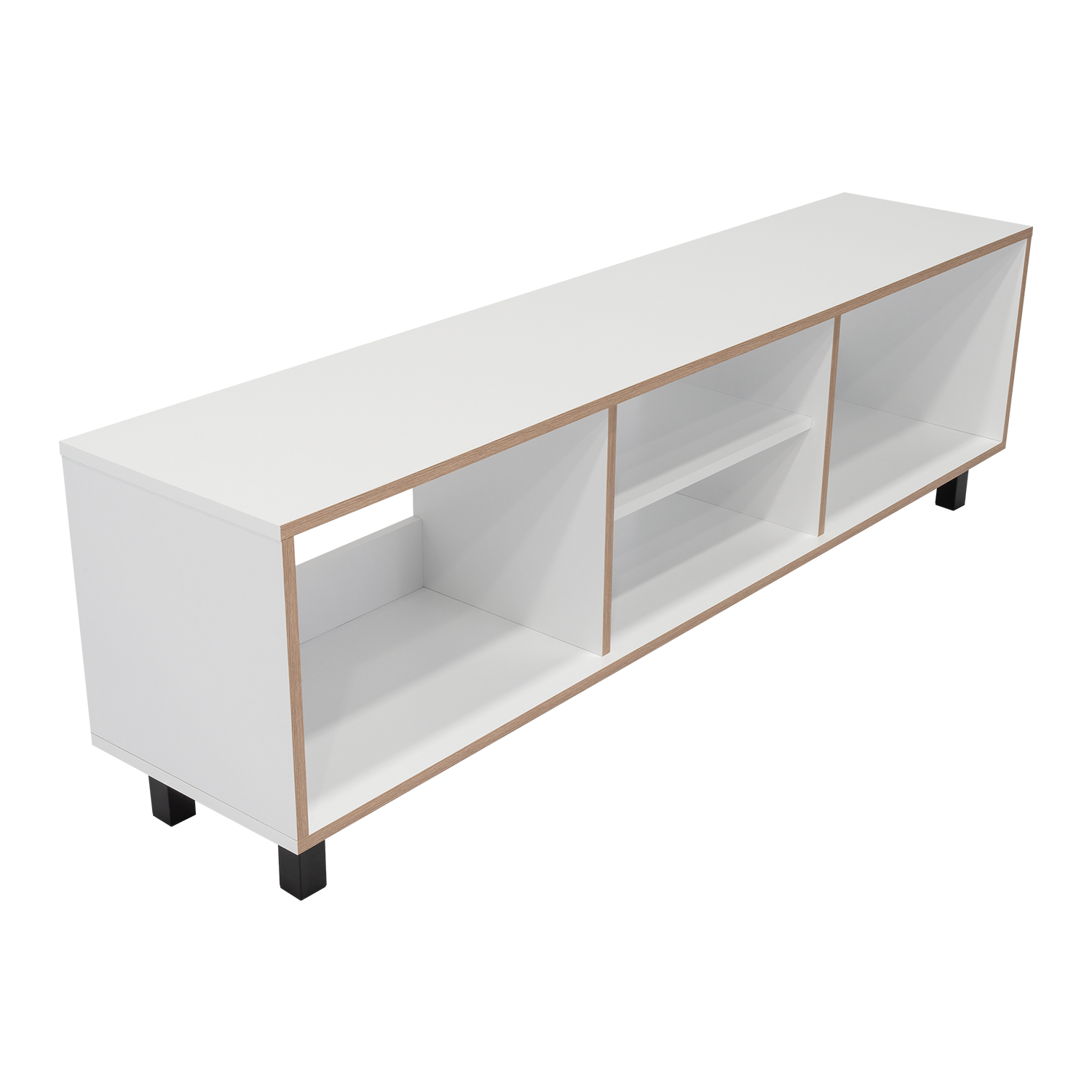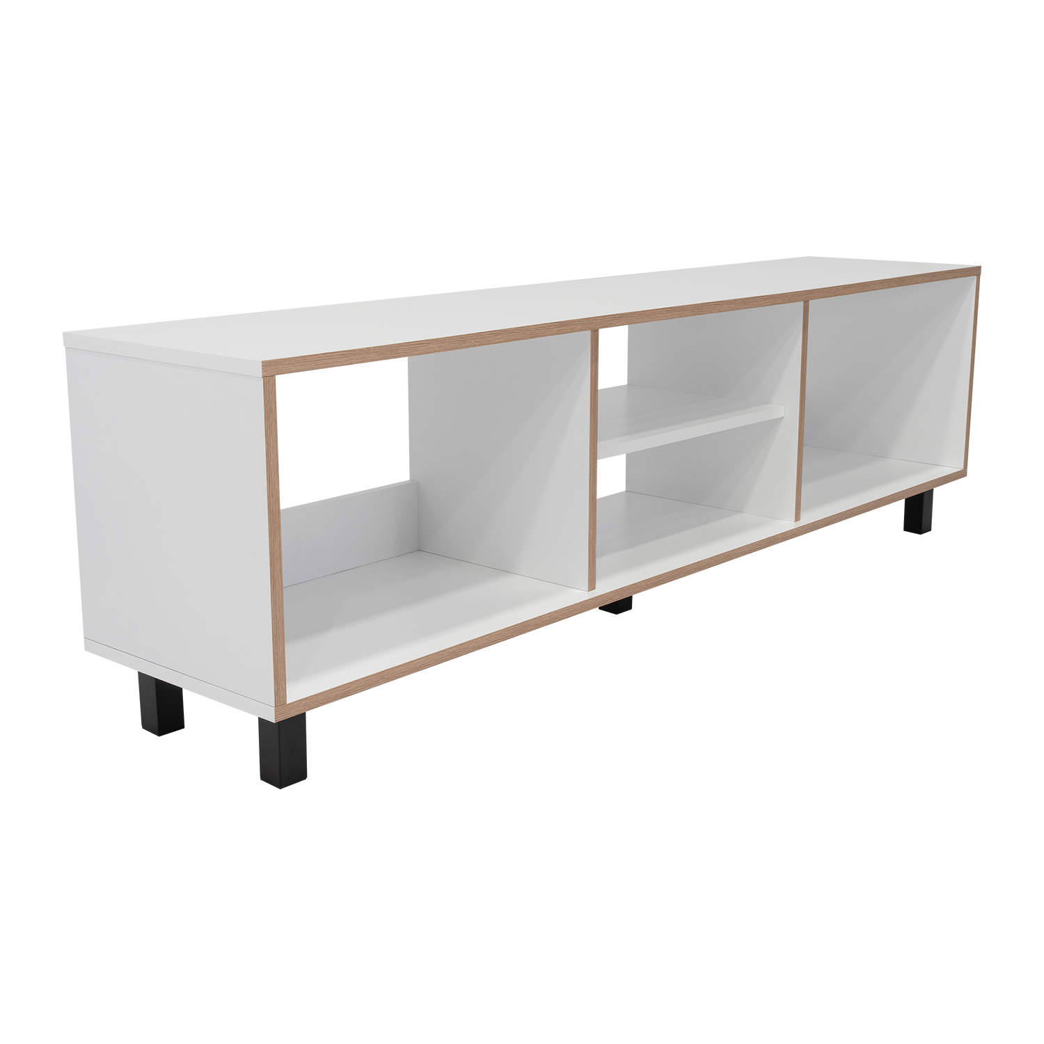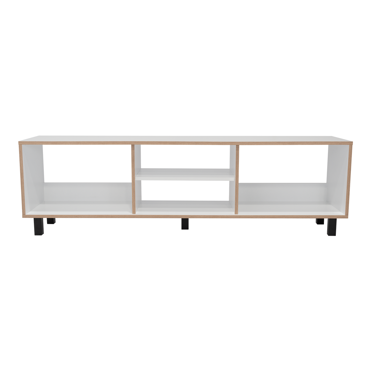 Rack para TV de 70'' máximo, espacios para ubicar equipos de audio y video, patas metálicas