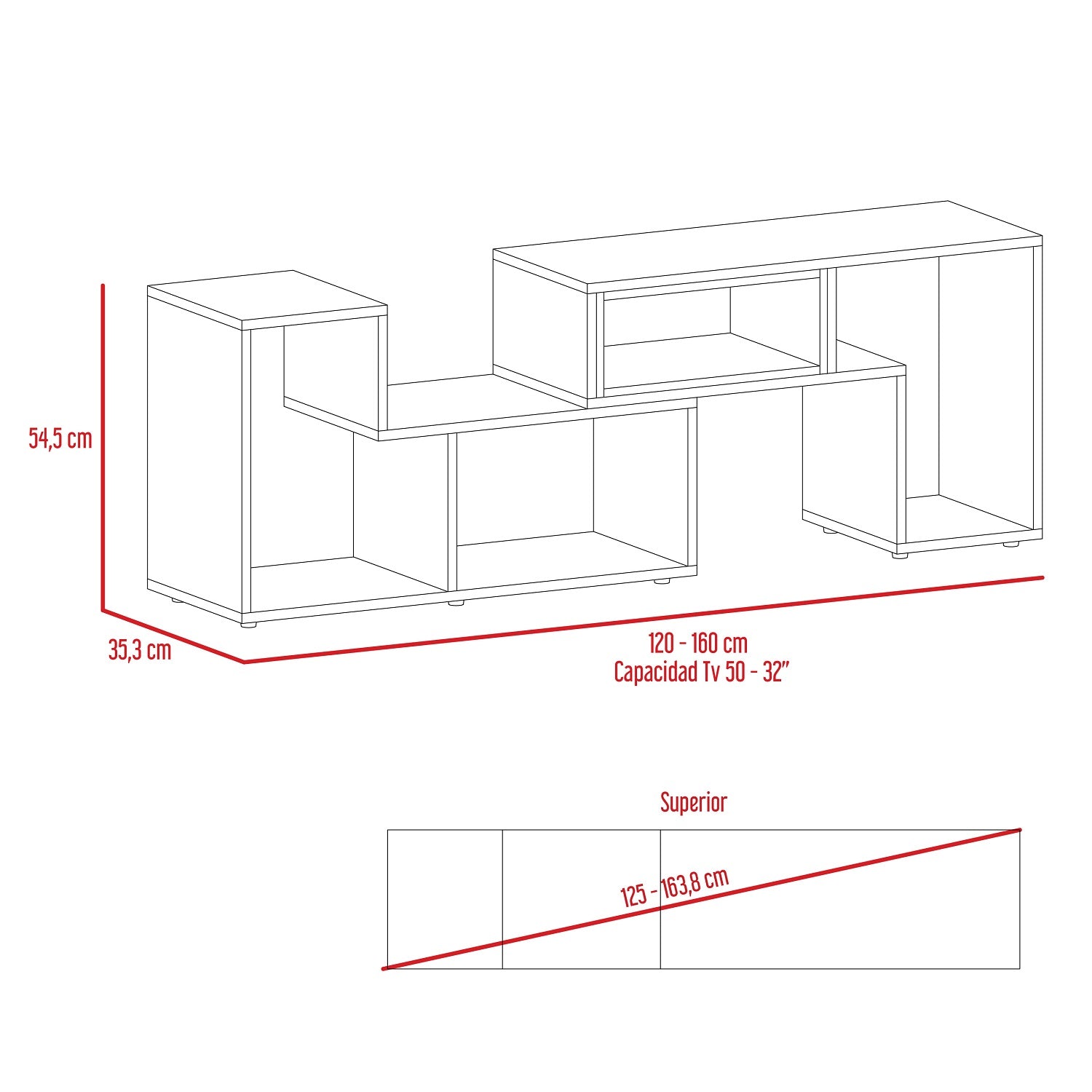 Rack para TV de 40'' maximo, diseño moderno, espacio para objetos de audio y video, compartimiento central